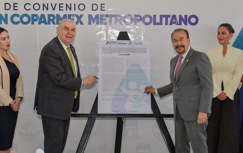 Atizapán de Zaragoza, Edomex, 21 de abril.- El Alcalde Pedro Rodríguez Villegas firmó un convenio de colaboración con COPARMEX Metropolitano del Estado de México, el cual permitirá consolidar a Atizapán como uno de los mejores municipios del país para invertir y hacer crecer la industria, lo que se traducirá en más oportunidades para las y los atizapenses.