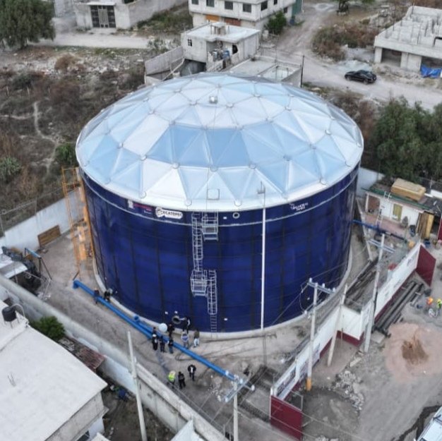 Cisneros Coss observó desde adentro el enorme Tanque Maestro, de 23.87 metros de diámetro y 11.45 metros de altura, con capacidad para almacenar cinco mil 129 metros cúbicos de agua potable, con tecnología de vidrio fusionado al acero, ubicado en calle Cardenal, colonia Ciudad Cuauhtémoc Sección Xochiquetzal, en la parte alta de esta comunidad.
