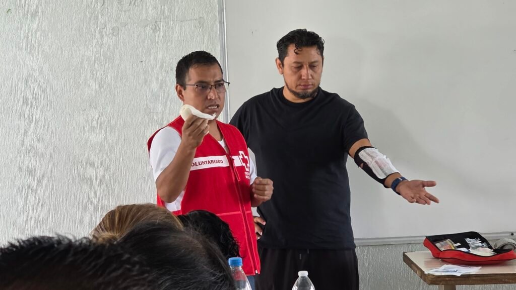 Los talleres son impartidos por personal de la Cruz Roja, quien instruye en maniobras de reanimación cardiopulmonar (RCP), técnicas de vendaje y acciones inmediatas ante situaciones de atragantamiento, entre otras medidas preventivas.