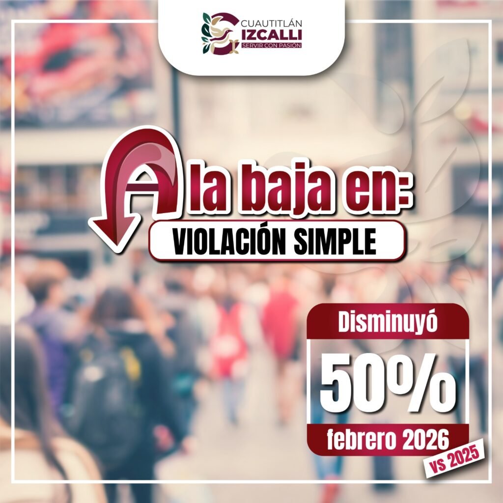 Cuautitlán Izcalli, 15 de abril.- El municipio de Cuautitlán Izcalli presentó una baja en las denuncias por violación simple en febrero de 2026, de acuerdo con cifras oficiales del Secretariado Ejecutivo del Sistema Nacional de Seguridad Pública (SESNSP). En comparación con el mismo mes de 2025, los casos pasaron de 10 a 5, lo que representa una reducción del 50 por ciento.