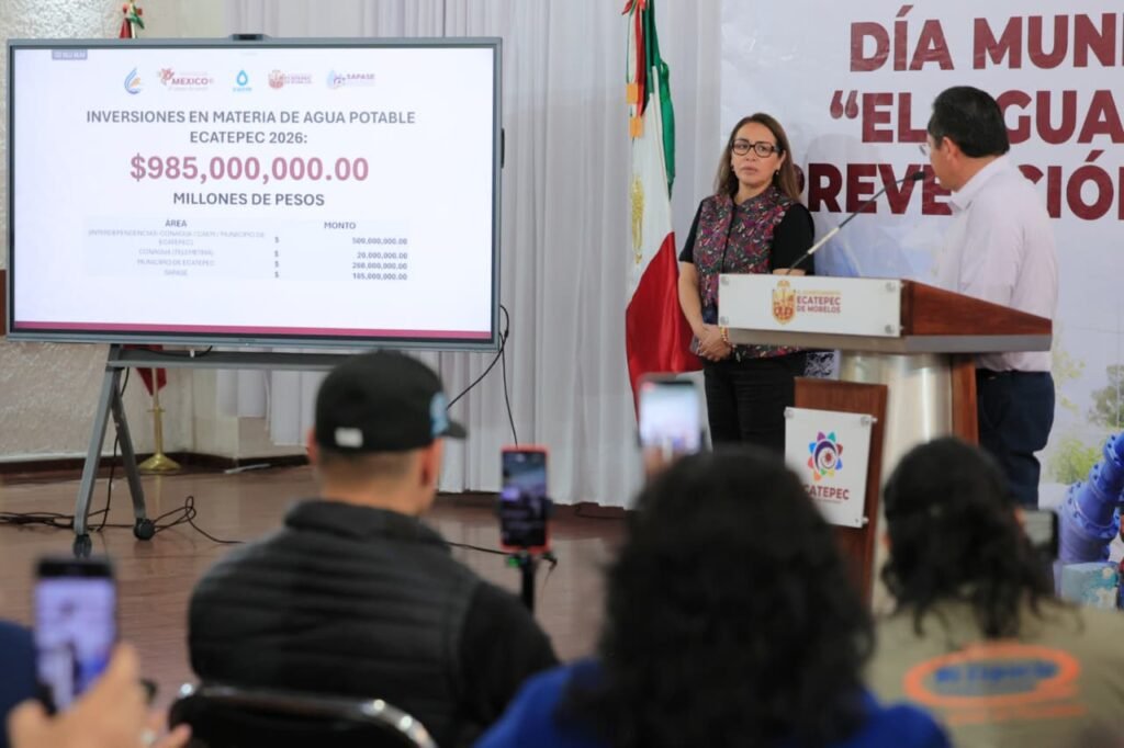 Ecatepec, Méx., a 07 de abril de 2026. El gobierno de Ecatepec invertirá este año casi mil millones de pesos en obras de infraestructura hidráulica, entre ellas la construcción de una mega planta potabilizadora y un tanque de almacenamiento, ambas en la Quinta Zona, lo que garantizará el acceso al agua potable como derecho humano y beneficiará a 1. 2 millones de habitantes.