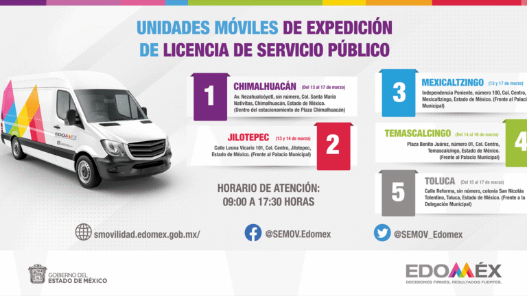 - Las unidades móviles apoyan y facilitan el trámite de la licencia de conducir Edomex 2026