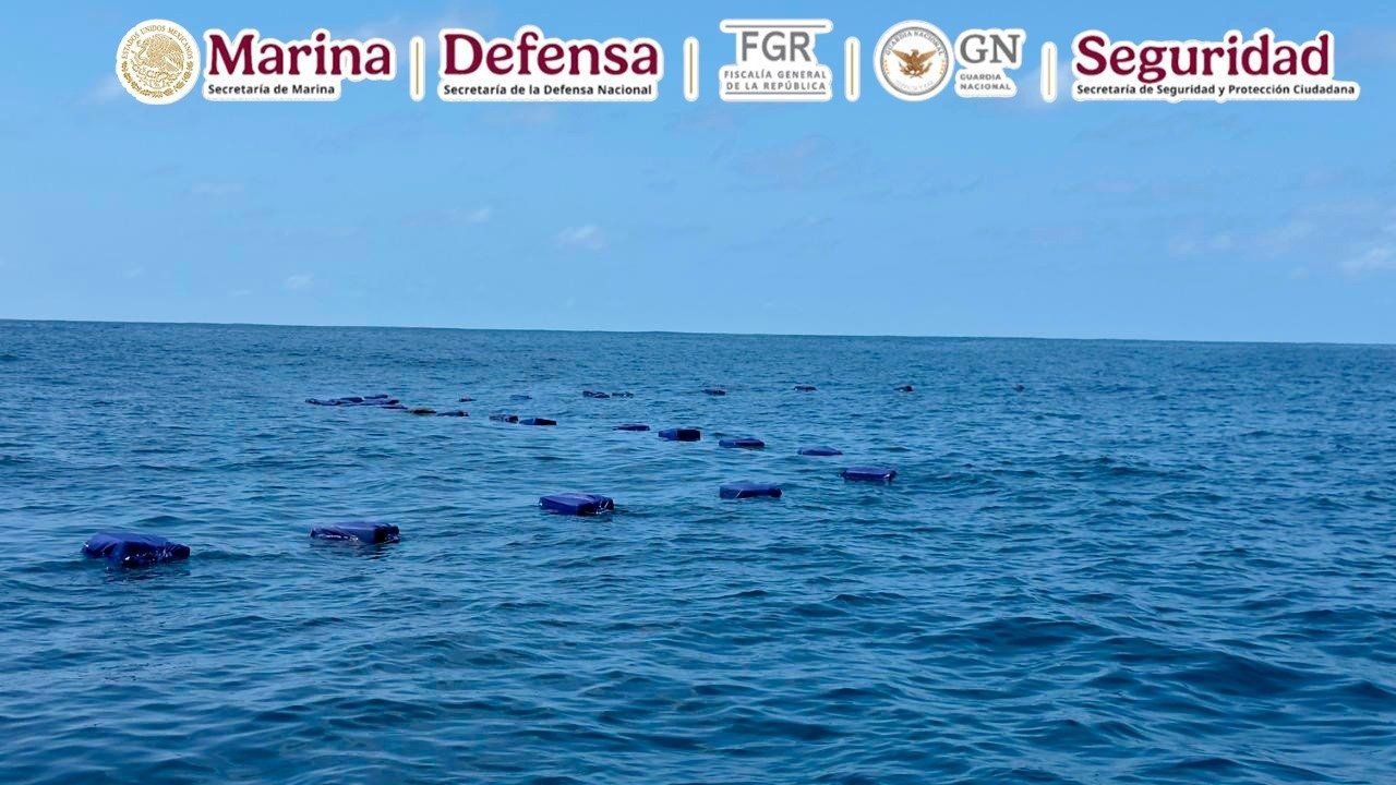 Ciudad de México.- En una operación marítima encabezada por elementos de la Secretaría de Marina (Semar) a través de la Armada de México en funciones de Guardia Costera, en coordinación con la Secretaría de la Defensa Nacional (Defensa), Fiscalía General de la República (FGR), Guardia Nacional (GN) y Secretaría de Seguridad y Protección Ciudadana (SSPC), se aseguraron 87 bultos con aproximadamente 2.5 toneladas de posible cocaína en las costas de Michoacán.